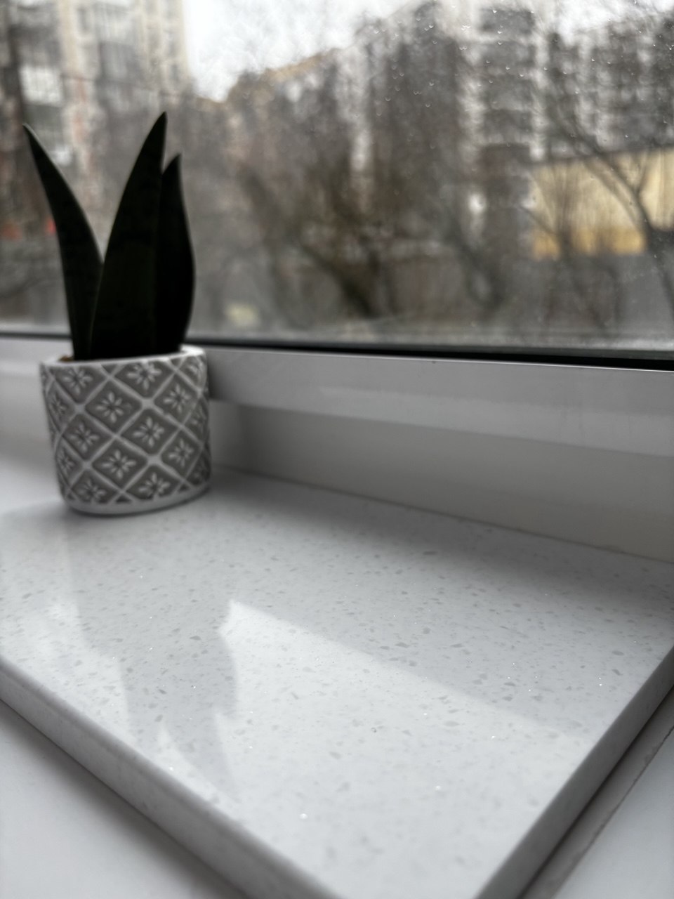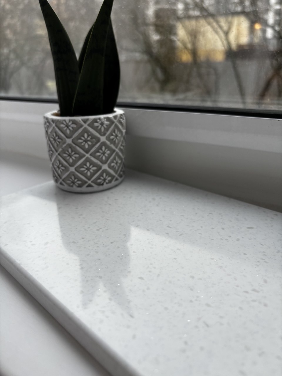 Подоконник Белый кварц из искусственного камня