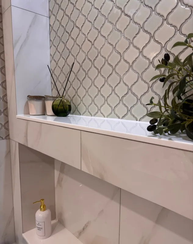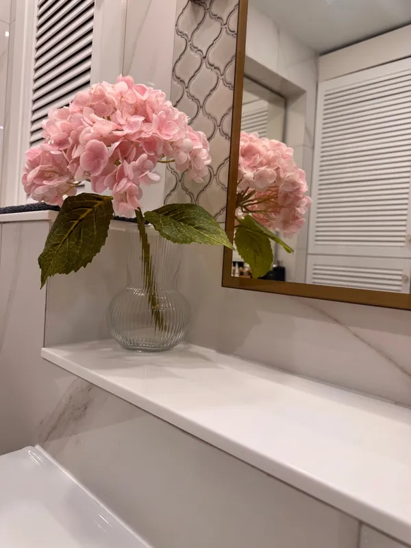 Крутые подоконники, сделали полочки в ванной. Красотища