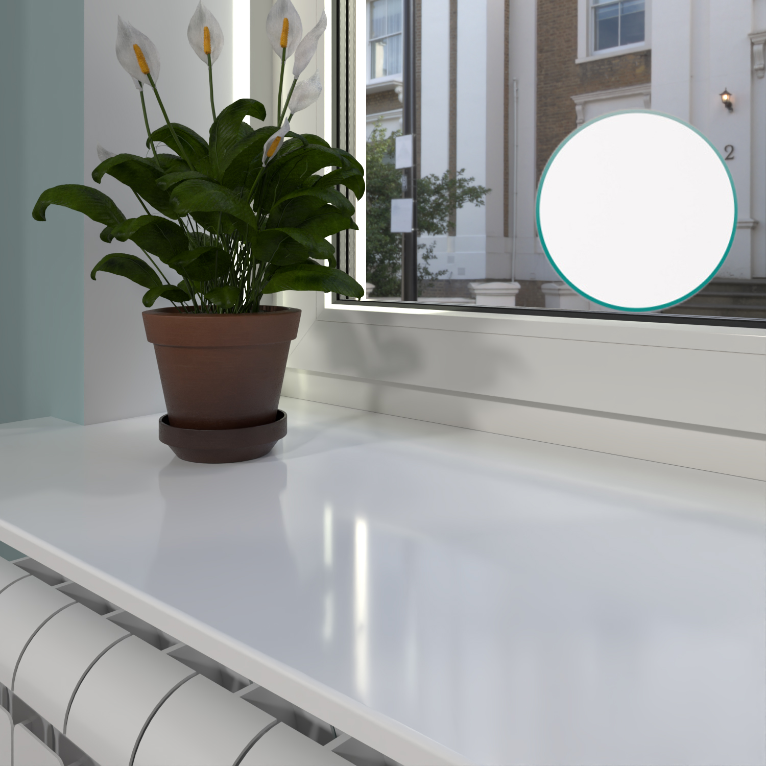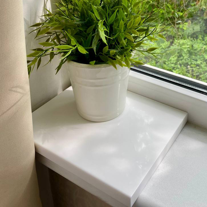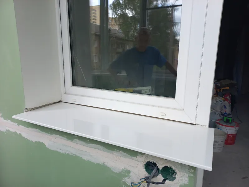 Заказывали белый подоконник из акрилового камня — результатом очень довольны.