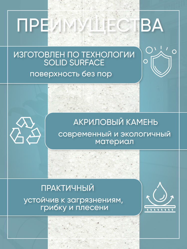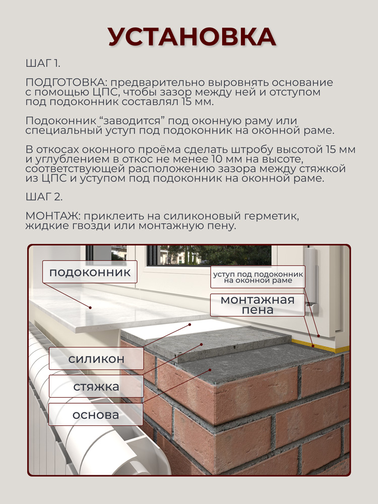 Подоконник Серый кварц из искусственного камня